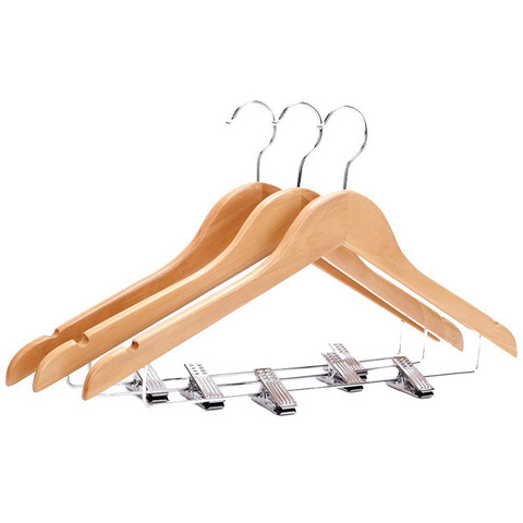 Perchas de madera a granel para traje de adulto, perchas de madera con Clips de Metal para ropa y pantalones